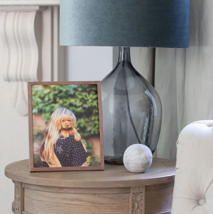 A walnut-colour alder wood frame with an elegant wood backing, packaged in an Addison Ross gift box.Â