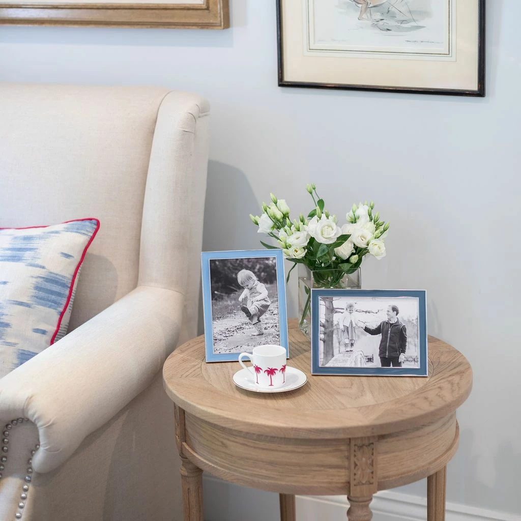 This gorgeous denim enamel and silver frame is one of our most popular designs. Chic and stylish, it is subtle and universally popular and sets off both color and black and white photos beautifully.