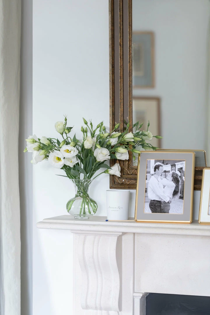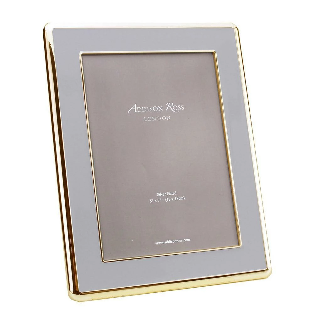 This exclusive and elegant approximately 1″ wide enamel frame in chiffon grey enamel features a soft curved gold edges with a dove grey velvet back stand that has elegant round silver turn buttons. This frame suits all interiors, simple and elegant a perfect gift for any occasion.