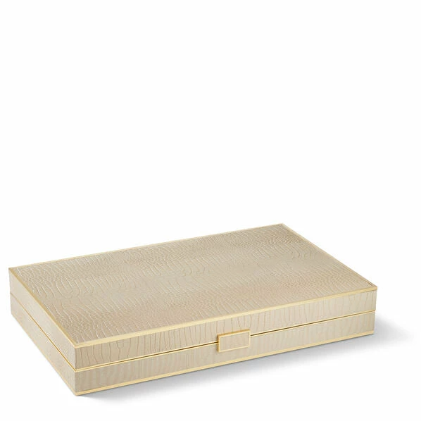 Backgammon is one of the oldest board games for two, and this beautiful set can be passed down the generations. It has a classic yet contemporary look, with an interior crafted from wood, brass and suede, and a luxurious leather exterior, embossed to give it a crocodile skin-style finish.
