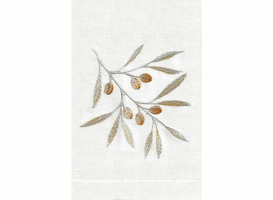 A super way to welcome your guests and dress up a powder room. Olive is embroidered on 100% Roma terry guest towels.