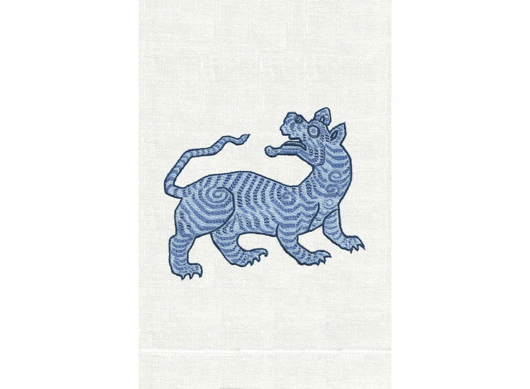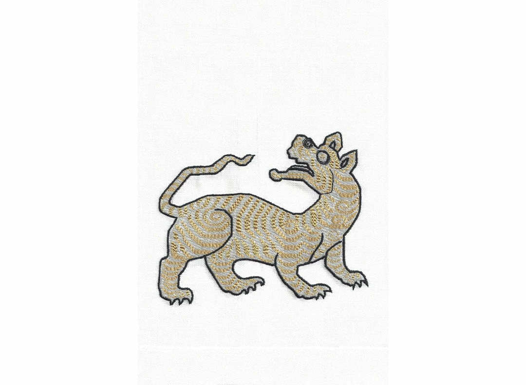 Tibetan Tiger is presented on 100% Italian Roma terry guest towels. Â