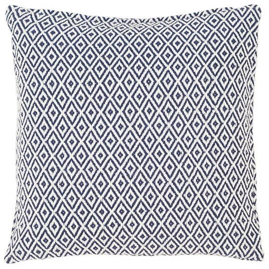 This eco-friendly indoor/outdoor decorative pillow, featuring a bold diamond pattern in preppy navy and white, packs a graphic punch on the porch or throughout the home.