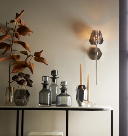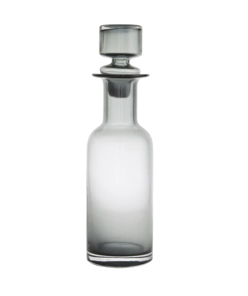 This striking smoke glass decanter with stopper will add chic to your table. Use on your bar in combination with your own vintage decanters or put one in each bathroom to hold mouthwash. A great gift when filled with a homemade infused liquor.