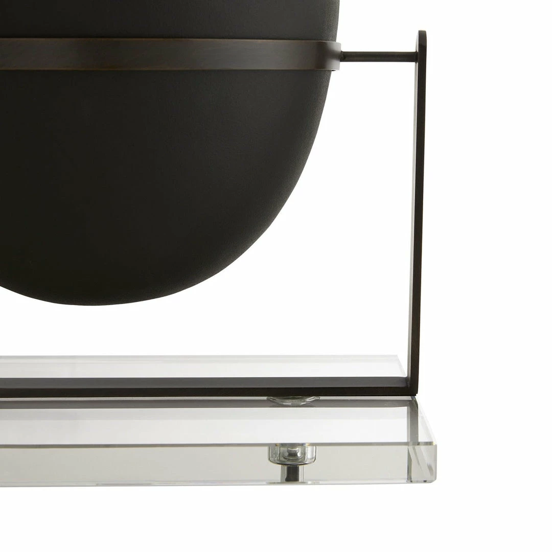 The short Foundry URN is an accessory that hearkens its form from the massive steel foundry URNs seen filled with molten metals in a factory. This charcoal ricestone URN makes for a handsome addition featured on a shelf or tabletop. Framed in a bronze steel holder with a clear crystal base for maximum stability. Ricestone will vary.
