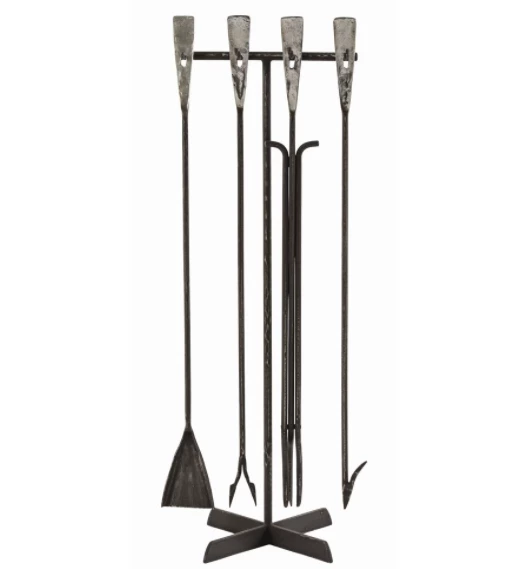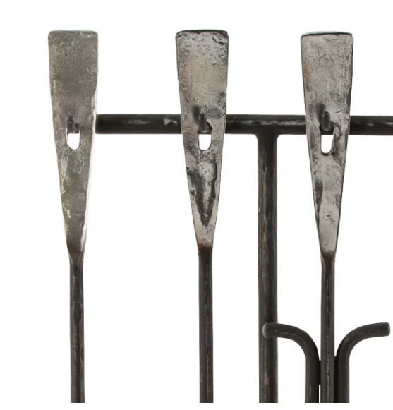 This hand forged iron tool set adds distinction to the hearth with a modern design created using old world craftsmanship and long-lasting materials. This tool set has polished handles that fit cleanly onto the stand.