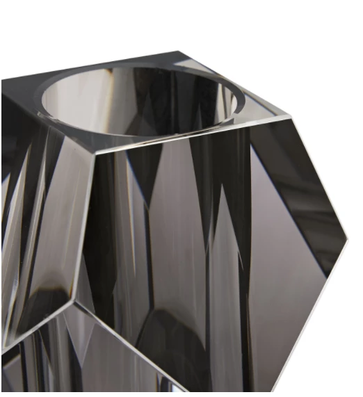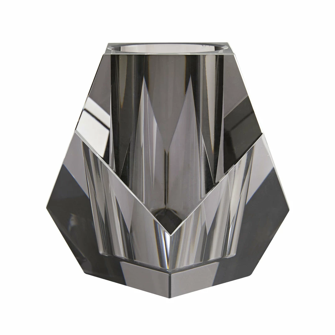 With an appearnce akin to a diamond, the Gemma vase’s smoke crystal creates an arresting blend of elements and colors. The facets, sharp corners, and edges of the vase are softened by its contents.Â