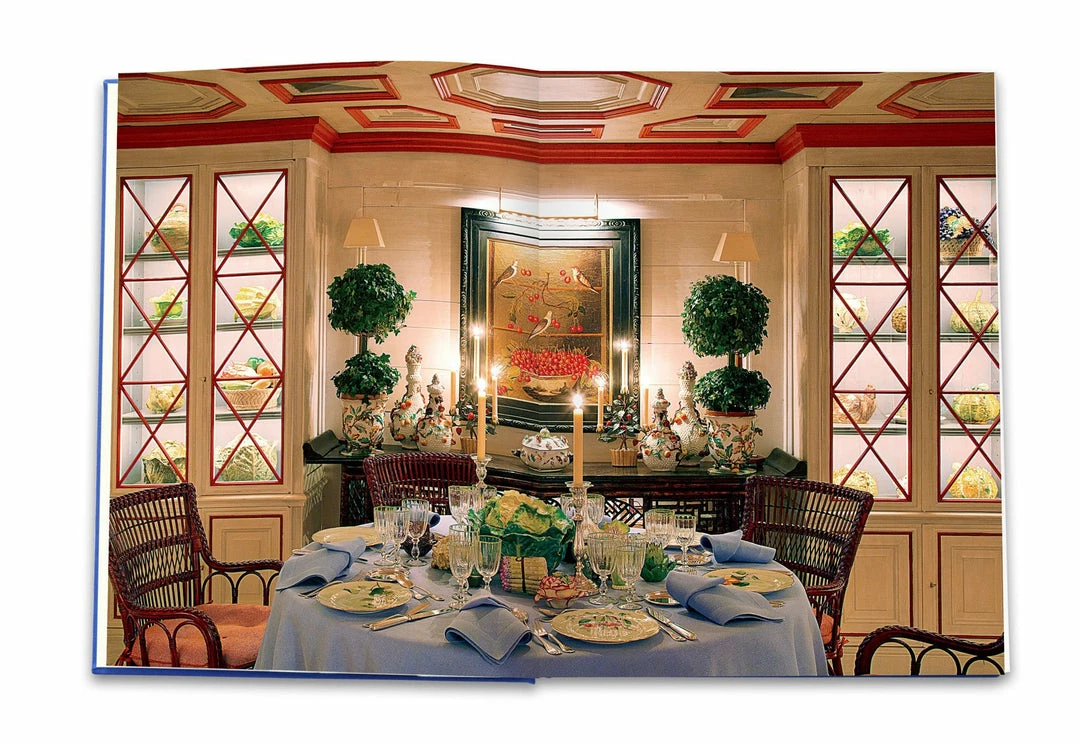 Photographed by renowned Italian photographer Oberto Gili, and organized by residence, this book invites the reader to enjoy various table settings and recipes specific to each home. A flan au chevre may be served on Portuguese porcelain at his ski chalet in Gstaad, while a visit to his home in London reveals a “decorating masterpiece”–says Talley in his text–with an orientalist dining room of blue and white china. The New York City pied-a-terre showcases “table decorations…limitless in their exquisiteness” including