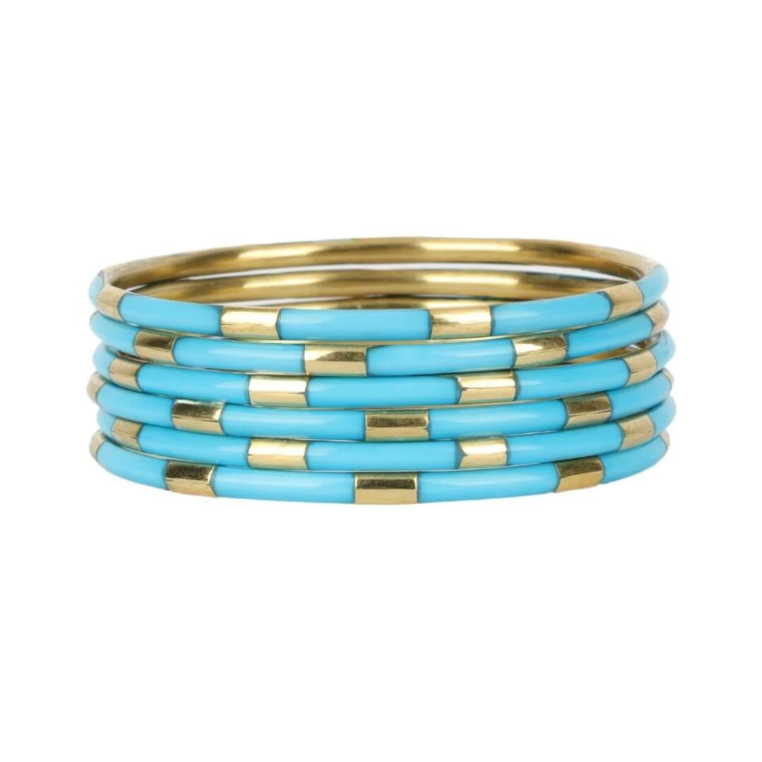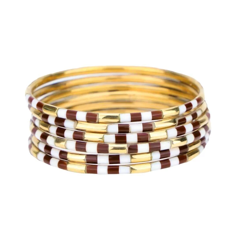 The allure of enamel is captured in our delicate set of six Veda bracelets. Available in great varity of colors. Combined with white and gold enamel for a modern must-have bracelet set, or stack them with an AWB of your choice. Vedas are ancient Hindu texts containing wisdom delivered to priests via hymns, philosophy, and other rituals.