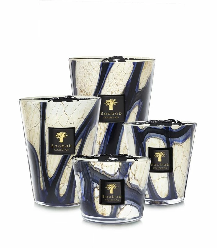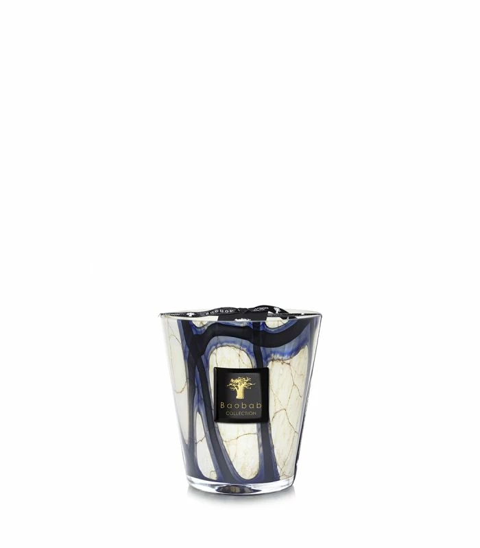 The scented candle is a timeless piece of sophistication and elegance. Its marbled glass with intense blue effects perfectly illustrates the amazing personality of Lazuli Stones.