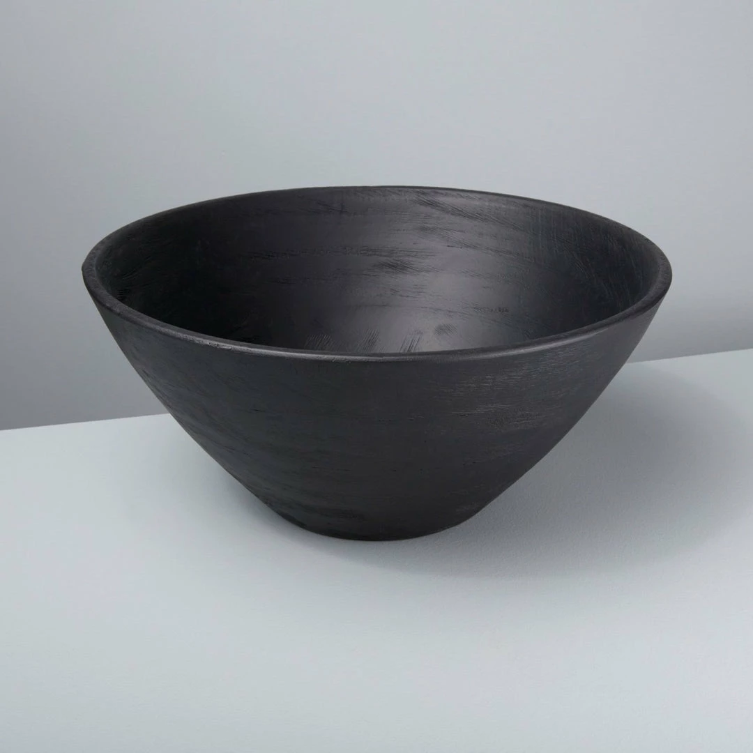 With this Black Mango Wood bowl, a bit of contrast goes a long way making it a bold addition to any meal. Handcrafted from protected groves in India, this dreamy bowl boasts a darkened color palette, beautifully accenting its natural striations and subtle highlights.
