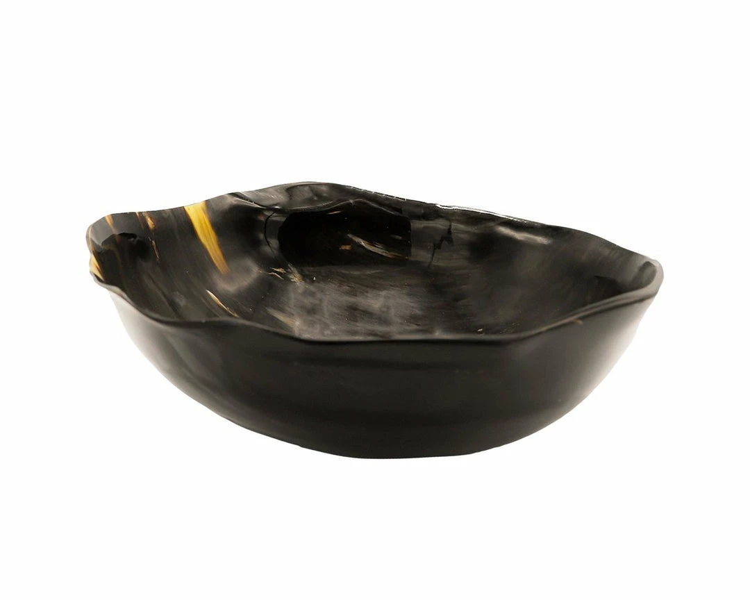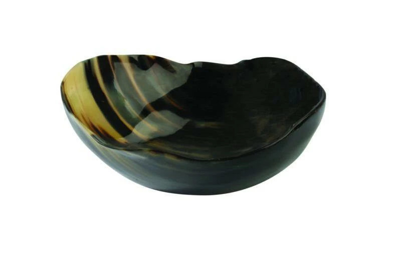This solid horn bowl has a subtle pattern. Functional as a salad bowl or as a decorative accessory. Not suitable for hot liquids.