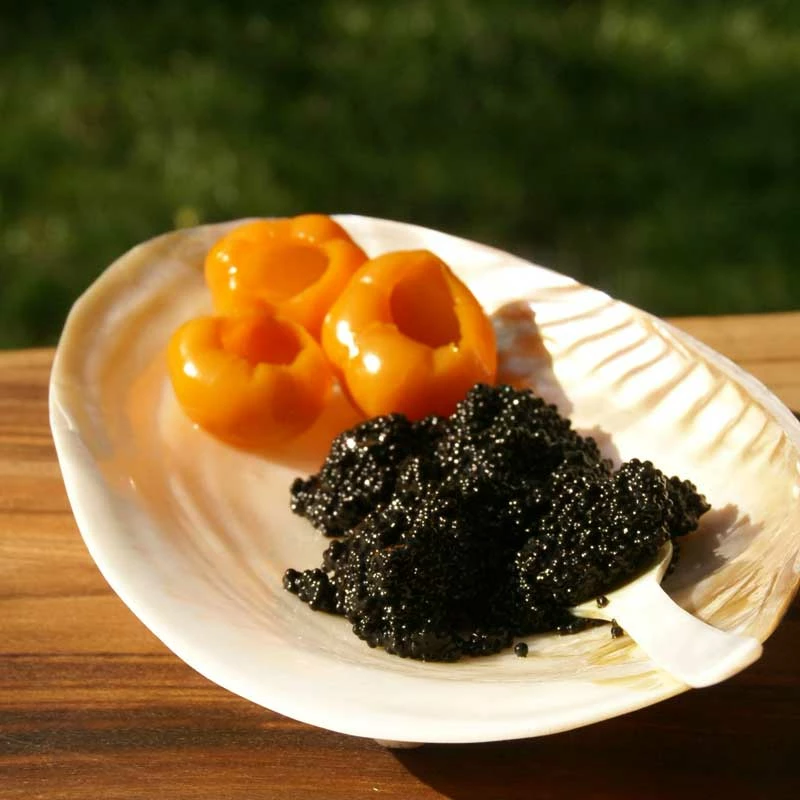 An elegant way to serve caviar – and most importantly the shell is non reactive and will not impart any unwanted flavor to your precious caviar.