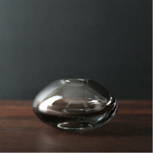 Add the small touches that make a room your own. Short and sweet, this low-slung round bud vase in smoke grey is ideal for larger blooms like gerbera daisies and mums, or a cluster of smaller flowers with gleaming glass bud vases in rich, luscious tones of amethyst, smoke and clear. Substantial in weight, and featuring a smooth surface, the gem of a piece was designed to catch the light and add a decorative glow. A lovely addition to any home. Perfect gifts, beautifully packaged and wonderfully priced.