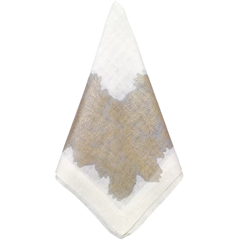 This metallic print napkin is spectacular. The spruce around the edge of the napkin is great for the holiday season or any special dinner. Â
