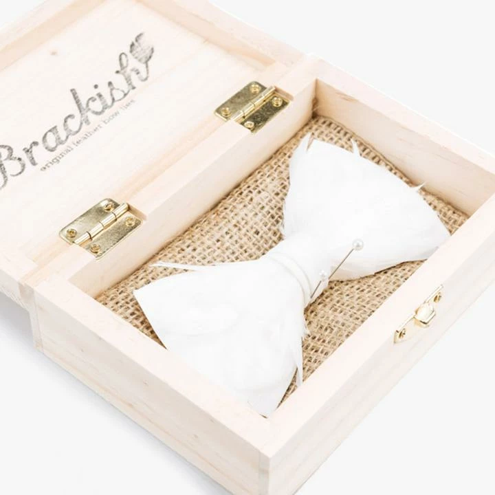 - Feathers for bow ties are hand-selected, giving each finished piece unique coloring.
