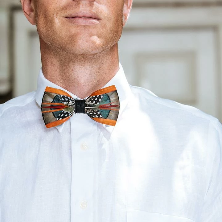 - Feathers for bow ties are hand-selected, giving each finished piece unique coloring.