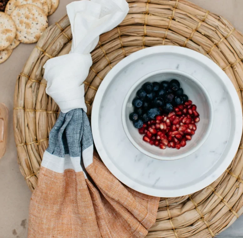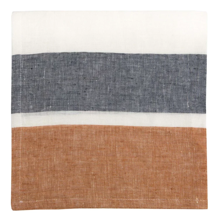 Visually intriguing without being flashy or distracting, these Bold Stripe napkins make an artistic complement to any table setting. Think of them as pieces of art which you can also wipe your mouth with — without offending any art-lovers. So whether you’re enjoying a sunny picnic outdoors or hosting a large formal dinner at home, you’ll find these linens work in a variety of contexts, with colors that prove softly uplifting.Â