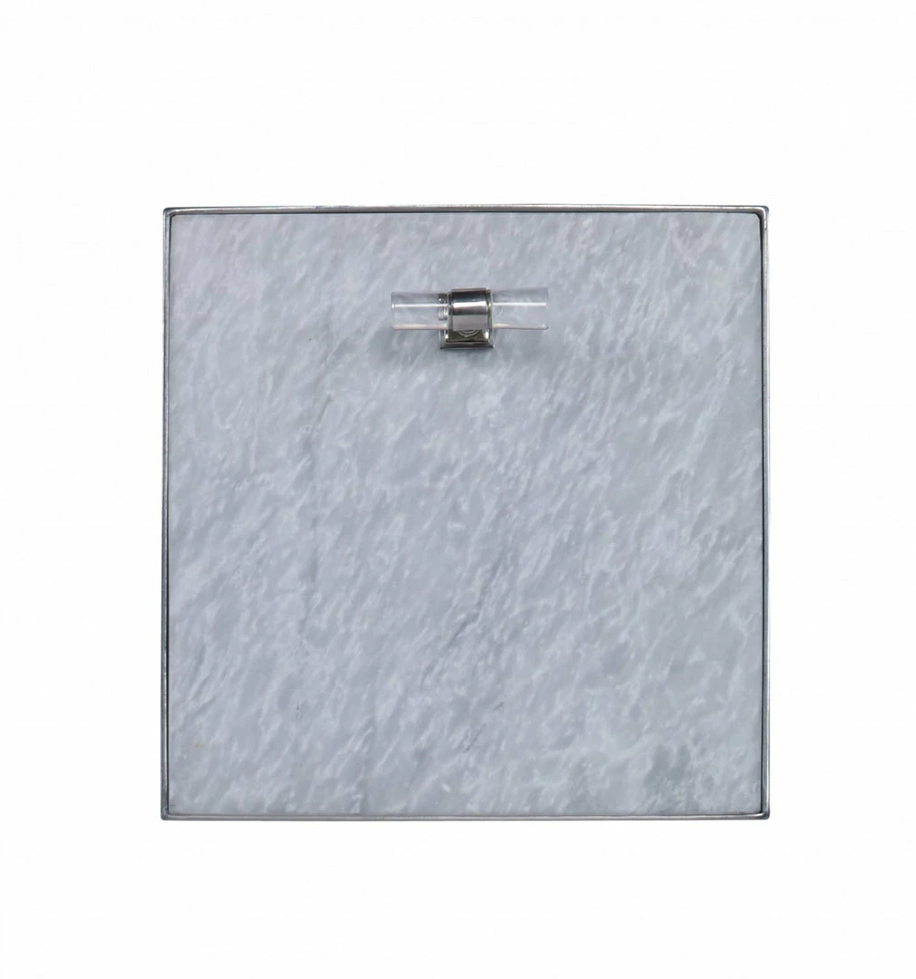 White with grey veining scagliola insert top with acrylic accent and silver finish metal and marble base.