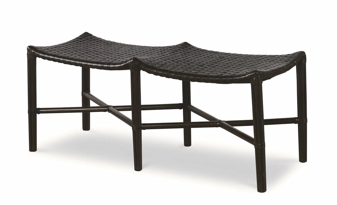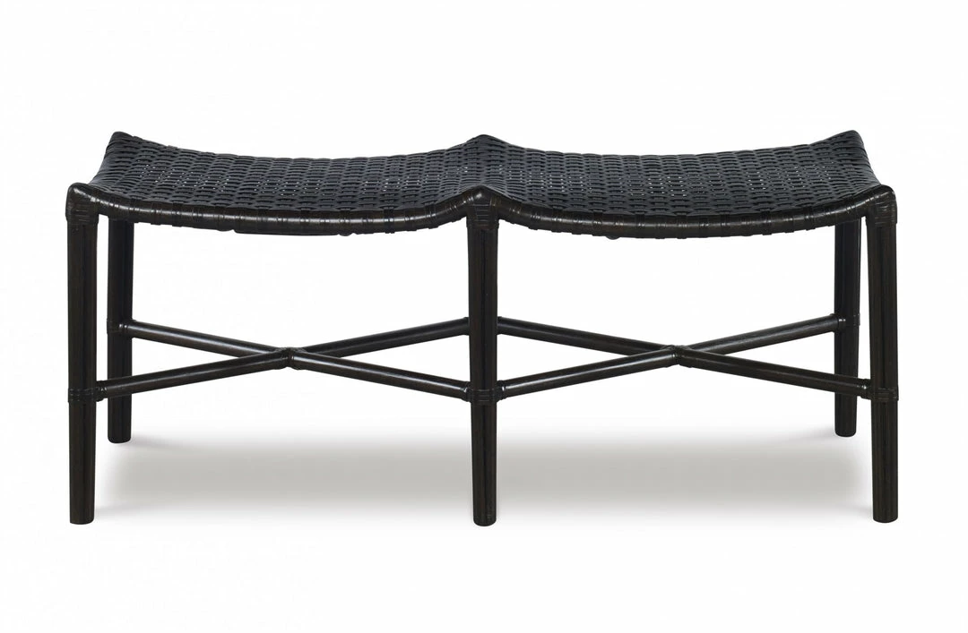 Our swing bench is crafted of rattan with leather bindings. The double saddle seat design has “X” stretchers underneath each seat for support. A clean and modern silhouette, this bench is easy to tuck at the foot of a bed, in a hallway or foyer or beside a fireplace.