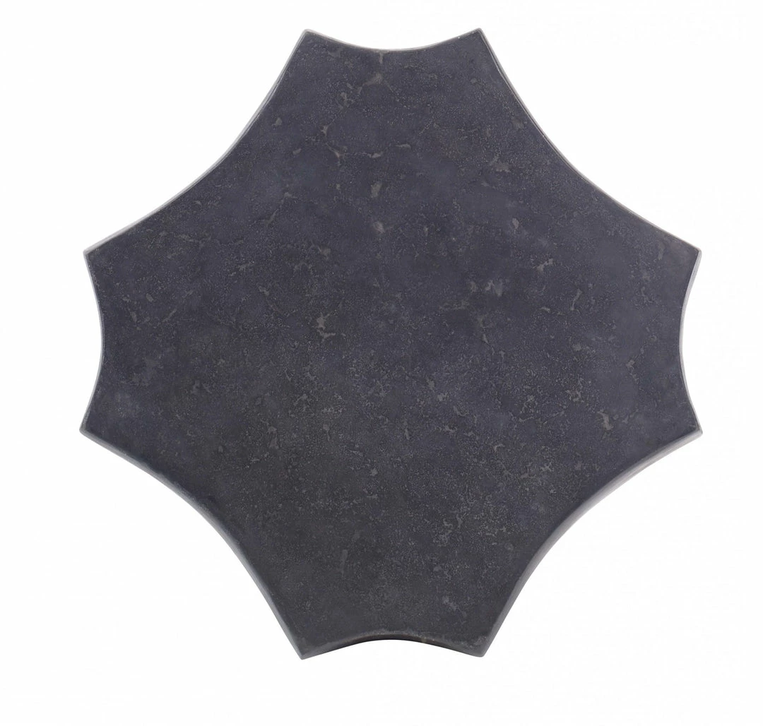 The black cast stone Lamp Table is a sculptured eight sided form that starts small at the floor and grows to its full size at the top. The table itself is made from cast stone which makes it substantial then it is electroformed with brass and finished in stunning antique brass.