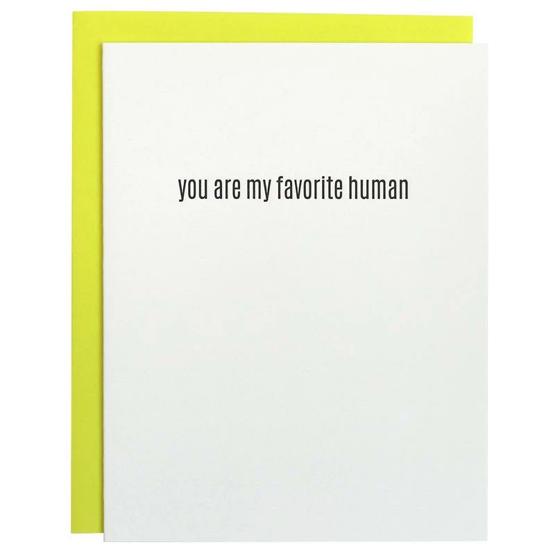 Our “Favorite Human” card is letterpress printed on a vintage printing press.