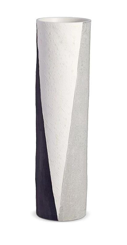 In Cubisme, abstracted forms are remodeled with concrete simplicity into decorative pieces for the home. Finely-textured vases, table lamps, floor lamps and a decorative box are hand-painted in geometric patterns. Each piece is meticulously crafted from fine earthenware and finished in contrasting black, white and grey matte glazes.