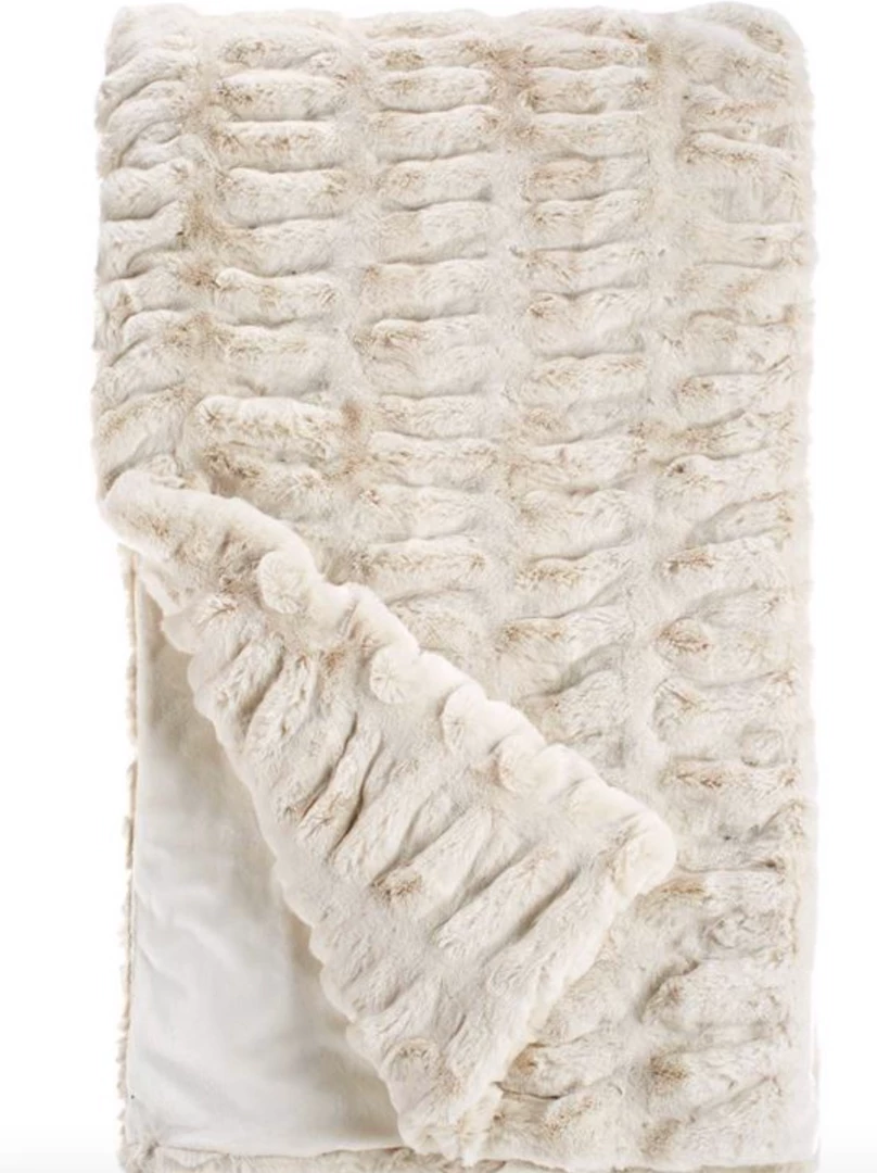 Even your bones are cold? Invite our Ivory Faux Mink throw to become your best friend! Experience the soothing warmth of a fur that exudes comfort, peace and tranquility, even if YOUR winter lasts ten months, thanks to a partner who keeps the A/C crazy-low. Breathe a grateful sigh as you settle under this lush, luxe fur, further enhanced with ruching. The tucks and pleats that create texture and a fluid, liquid hand, ruching adds even more depth and richness to Ivory Faux Mink. Understandably our best-selling throw thanks to a whisper-soft touch, Ivory Faux Mink has a fluid, supple hand as well. An effortless way to add luxurious ambiance, an Ivory Mink throw may even bring resolution to the A/C conflict! The perfect balance of luxury AND function, our luxurious Ivory Faux Mink throws are velvet-lined AND conveniently machine wash/line dry.