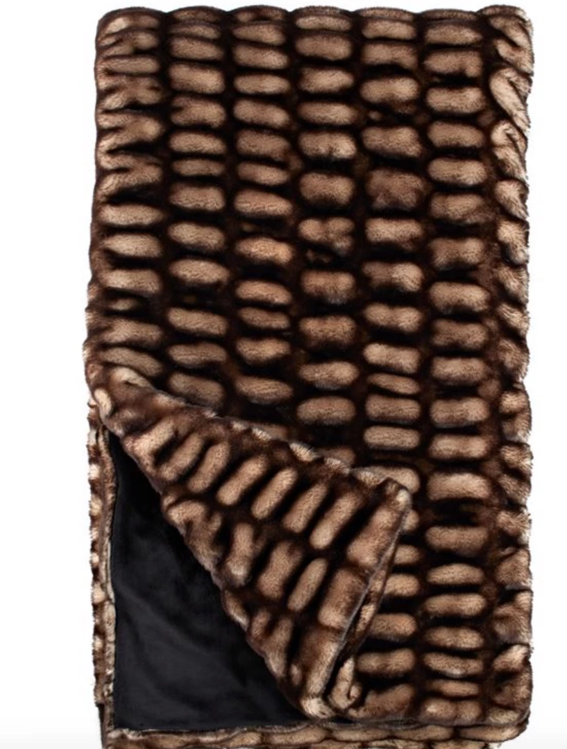 Tranquility begins with a  throw. The newest fur in our Couture Collection, Shadow Faux Mink is soooo soft, if you close your eyes, you’re not certain you’re touching it! To lush, luxe touch, add an exciting Greige color palette that moves from the warmth of Grey to the coolness of soft Ivory. Perfect for introducing Grey into a room of natural Tans and Ivory, Shadow Faux Mink has a soft Grey undercoat further enhanced with ruching. The tucks and pleats that create texture and a fluid, liquid hand, ruching adds depth and richness to Shadow Faux Mink, making our velvet-lined throws even more beautiful. Bringing maximum ambiance and understated luxury to a great room, living room, study or bedroom, Truffle Chinchilla throws are available in multiple sizes. Luxe AND functional, like all Fabulous-Furs throws, Truffle Chinchilla throws are conveniently machine wash/line dry.