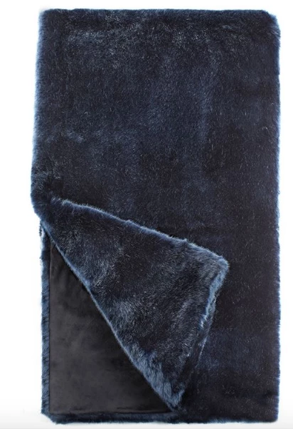 Pamper the senses and soothe the soul with a Steel Blue Mink throw. Edgy and urban, rich dark Steel Blue has a touch that elevates it to our Couture Collection. Medium in length, the lush, dense pile has a smooth, silky touch that rivals nature’s own. In a deep hue suggestive of soothing slumber, this sophisticated fur invites spontaneous napping and relaxed reading. Perfect for draping over a sofa or easy chair, Steel Blue Mink throws are velvet-lined and available in three sizes. More than beautiful, Steel Blue Mink throws offer the added convenience of easy-care machine wash/line dry.