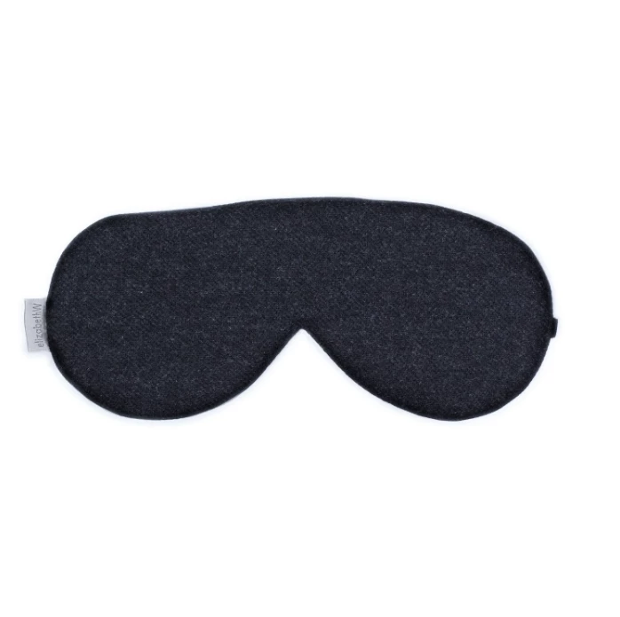 So soft, this adjustable wool eye mask blocks out the light to protect eyes and help you sleep. Made of wool with a silk underside and an adjustable velvet, elastic strap.