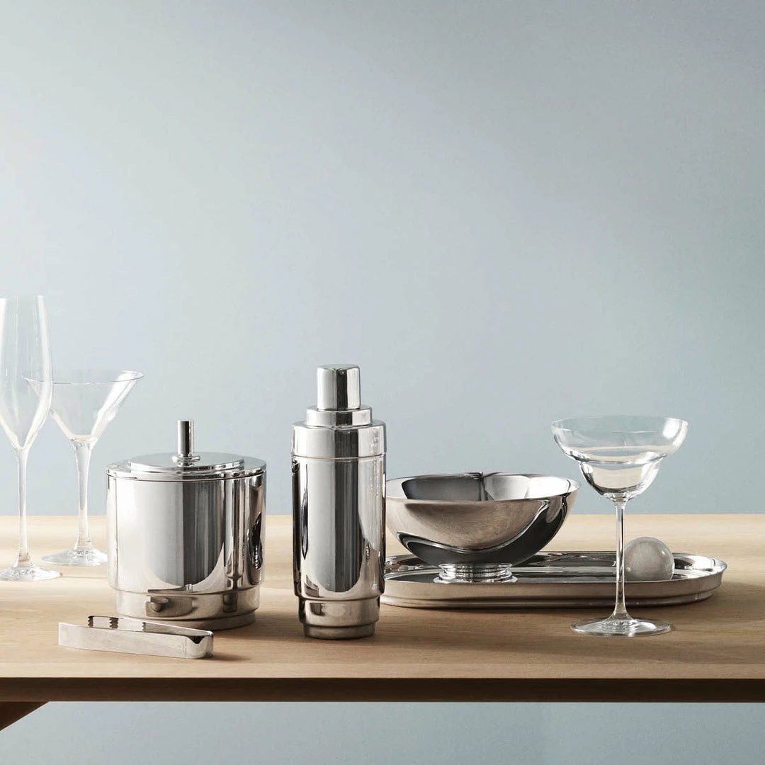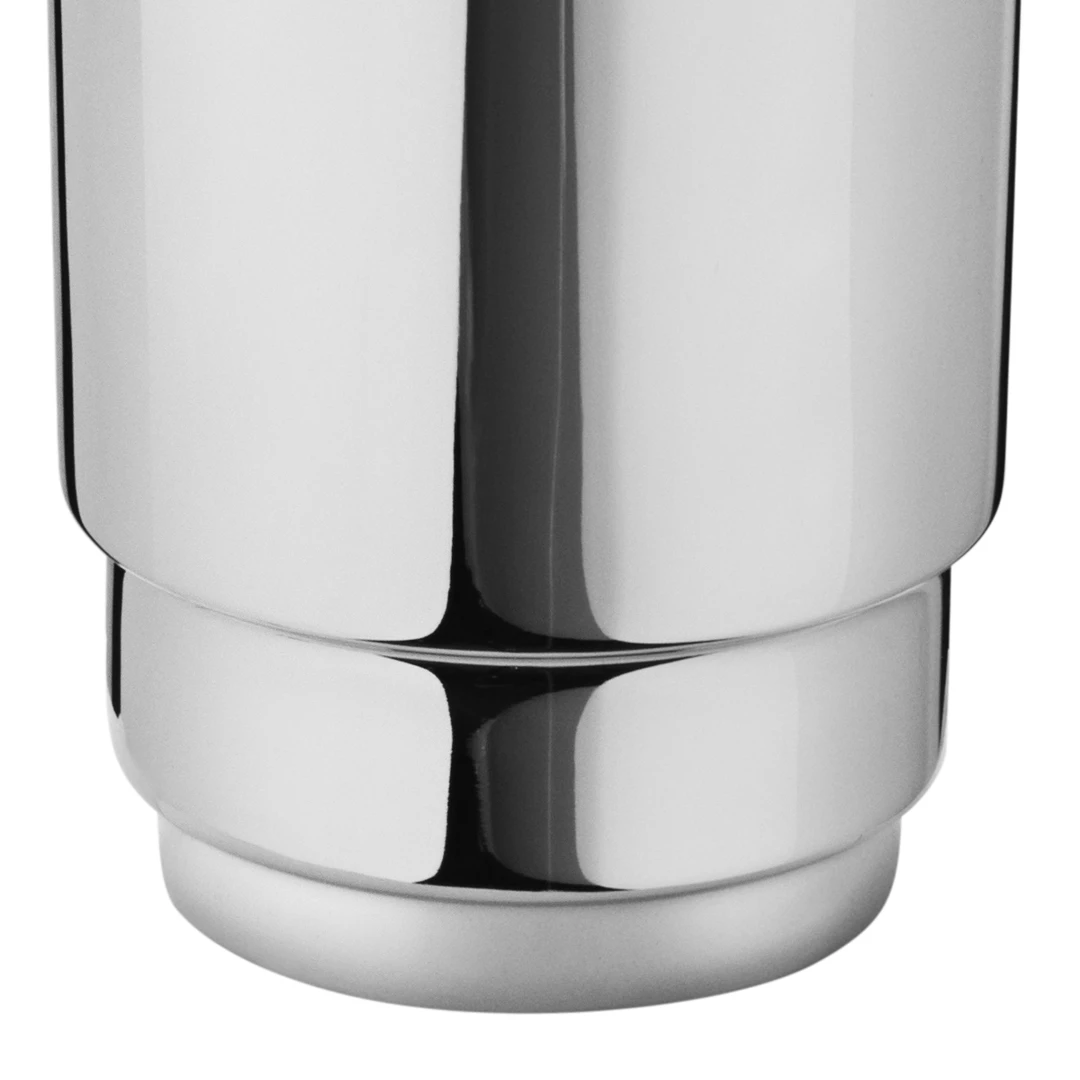 The cocktail shaker is expertly crafted in stainless steel with a gleaming mirror-polished surface.