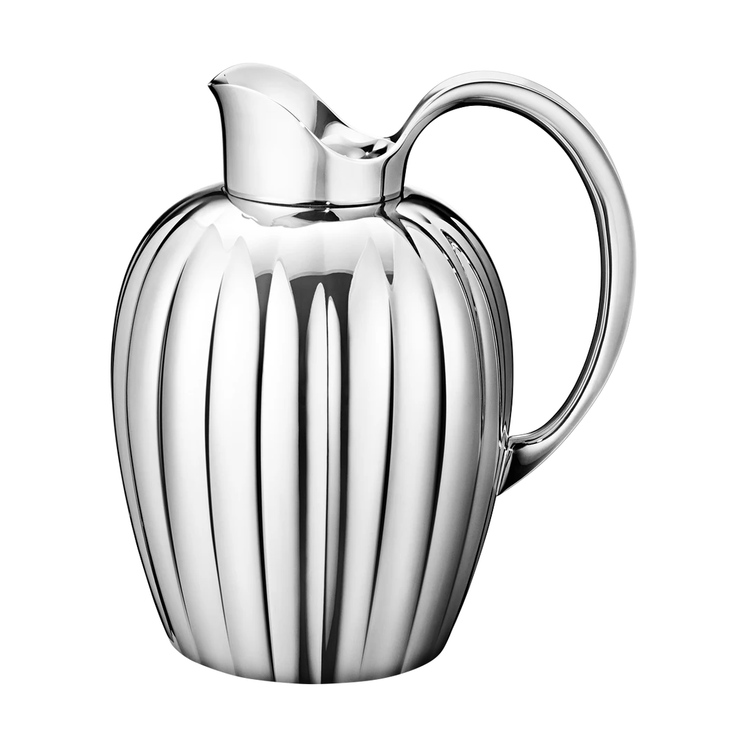 Based on the iconic Bernadotte thermo jug, this beautiful pitcher combines the very best in Scandinavian design with modern functionality. Crafted in mirror finished stainless steel with distinctive Art Deco-inspired grooved lines the jug brings a sophisticated elegance to the table top. The pitcher holds 1.6 liters of fluid making it perfect for iced water and juice or alternatively use it to serve soup for the ultimate stylish dinner party!