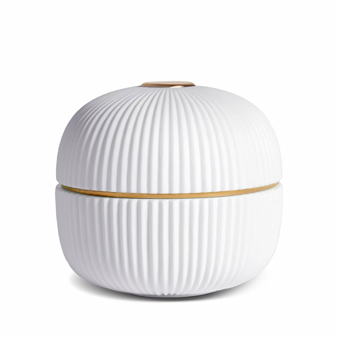 Inspired by the Ionic order of classical architecture, this chic box containing 4 small plates offers functional design for chic dessert service. Crafted from brilliant porcelain in a fluted vertical design and accented with gold.