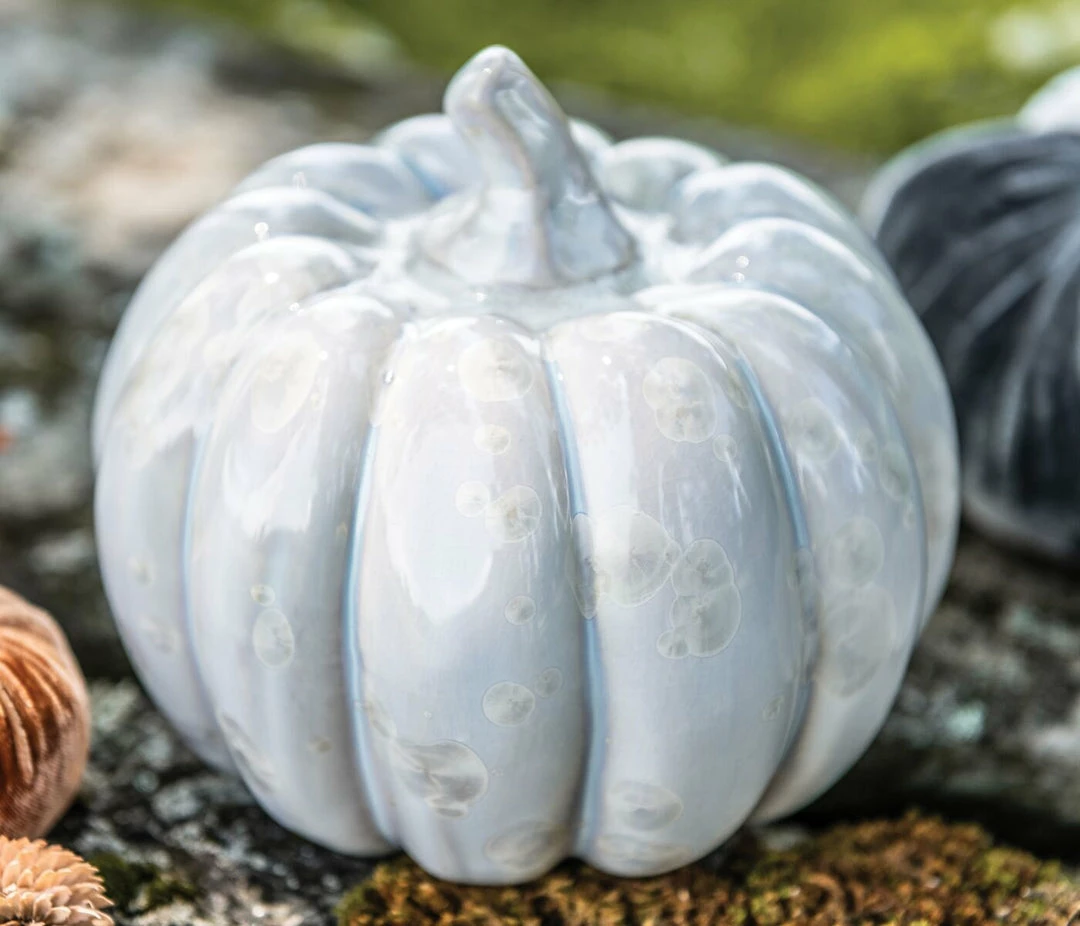 We’ve brought together our beloved pumpkin silhouette and our signature Crystalline technique for a fresh take on a classic. This emblem of the harvest is reimagined with a unique celestial effect to bring new brilliance to your fall table or mantel. Our unique glazing process means every pumpkin is beautifully unique – just like in nature.Â