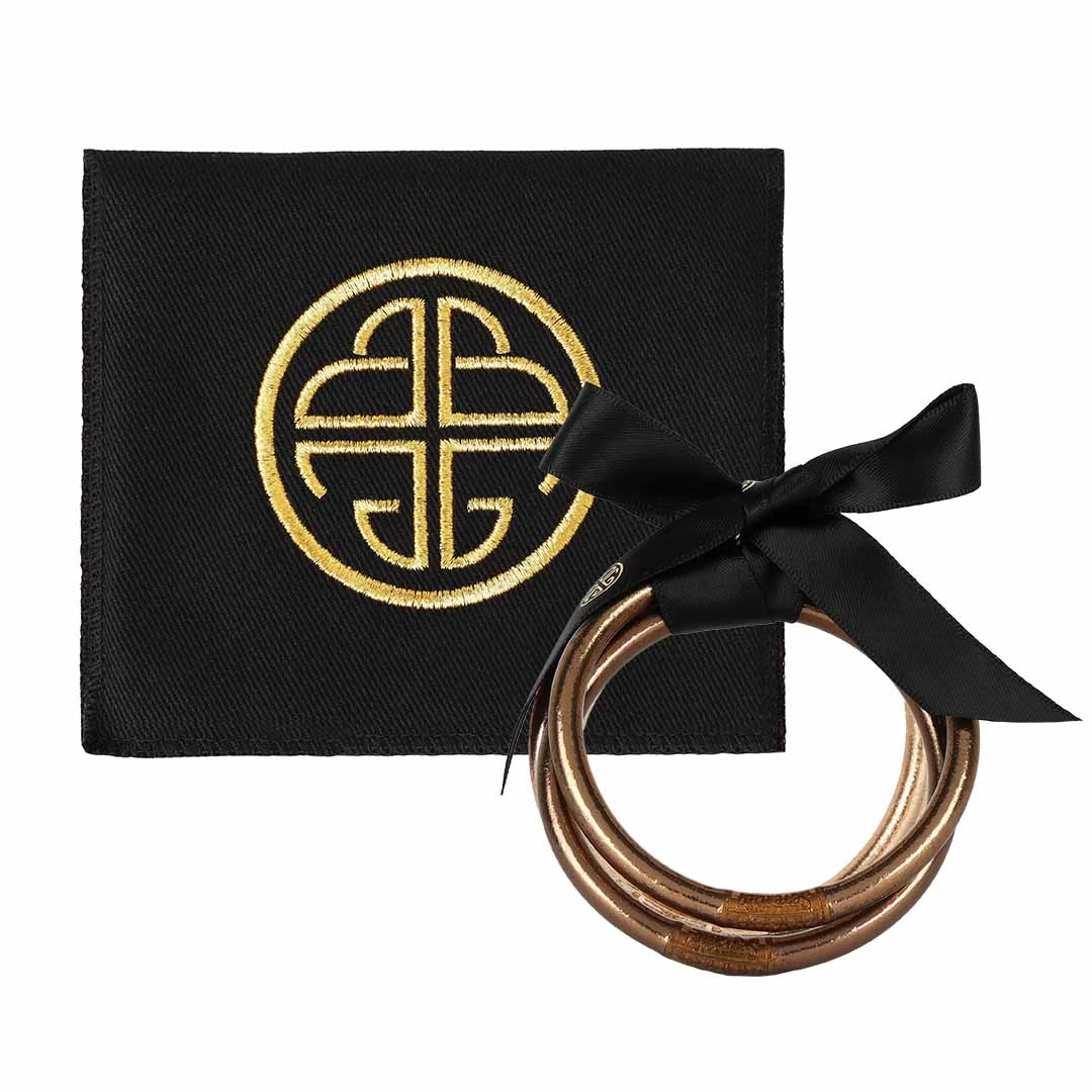 Set of four, Fawn All Weather Bangles have the amazing qualities that make them a must-have for the modern goddess…they are weightless, soundless, waterproof, and TSA proof.