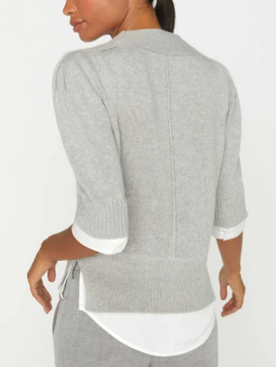 A new feminine addition to our Looker family, The Lucie Layered Vee Looker, is made from a luxe cotton/cashmere with a shirttail hem. It features a sensual, deep split V-neckline, our signature pleated shoulder and a ¾ sleeve length with shirt detail for a casual yet sophisticated sensibility. The subtle ribbing on the cuffs and neckline and split-side hem combined with a gorgeous back center seam make this piece a definitive must-have.