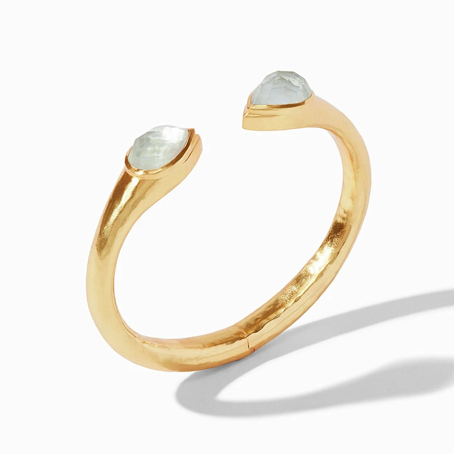 Sparkling pear-shaped endcaps of rose-cut imported glass on a luxuriously gilded shank.