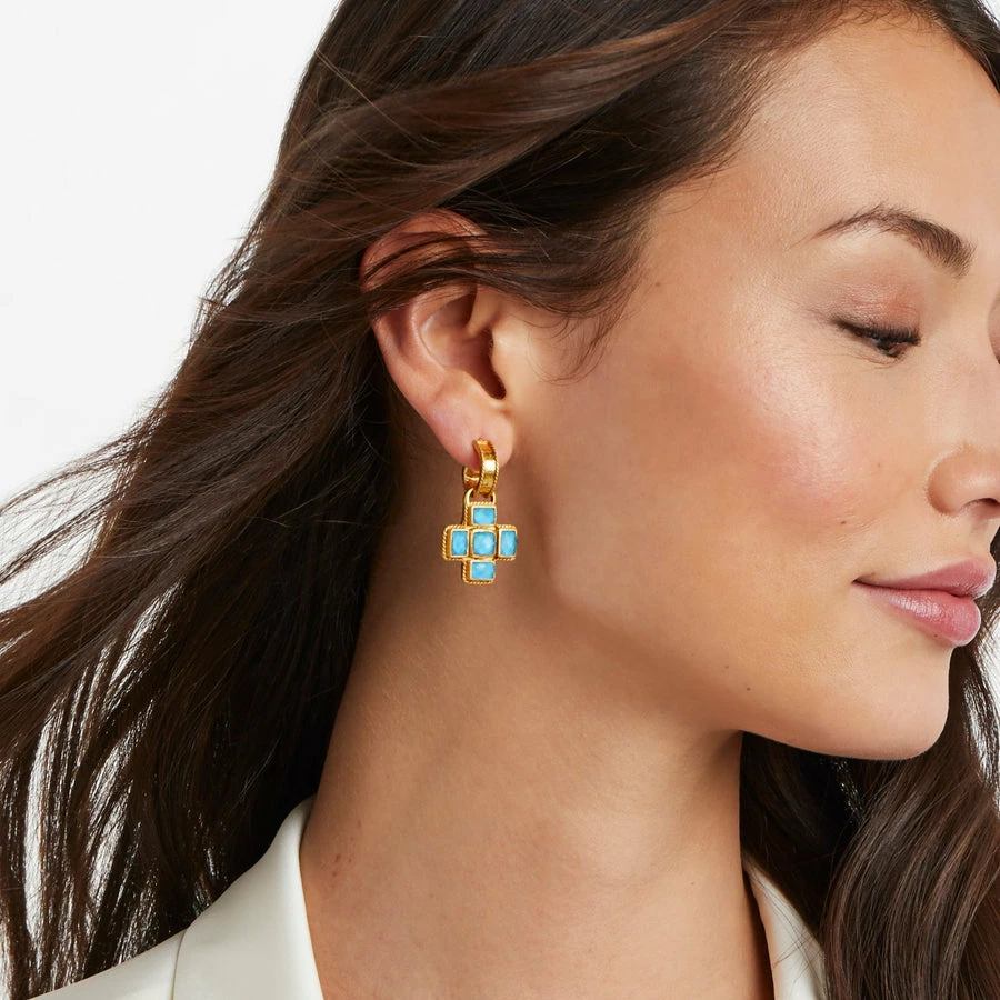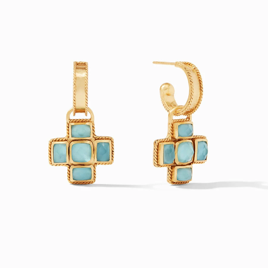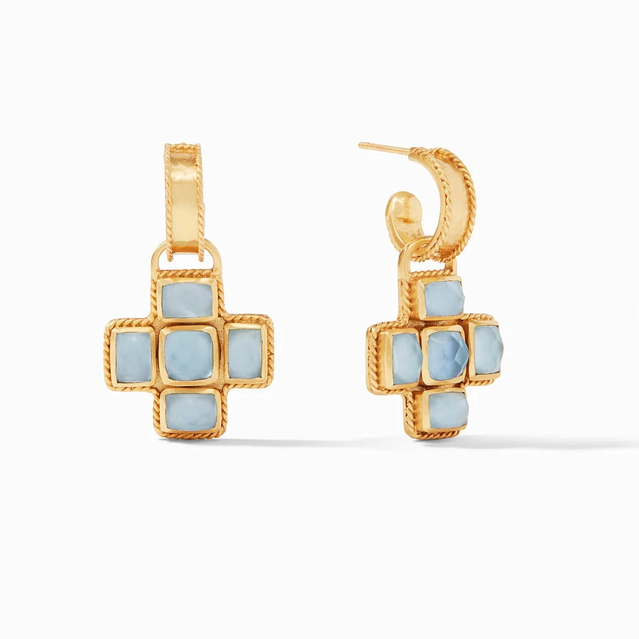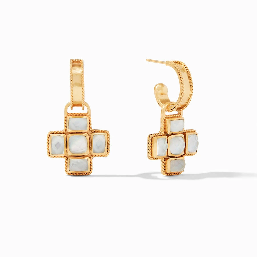 Charm with rose-cut gemstones suspended from a lightly hammered hoop finished with twisted wire detail.