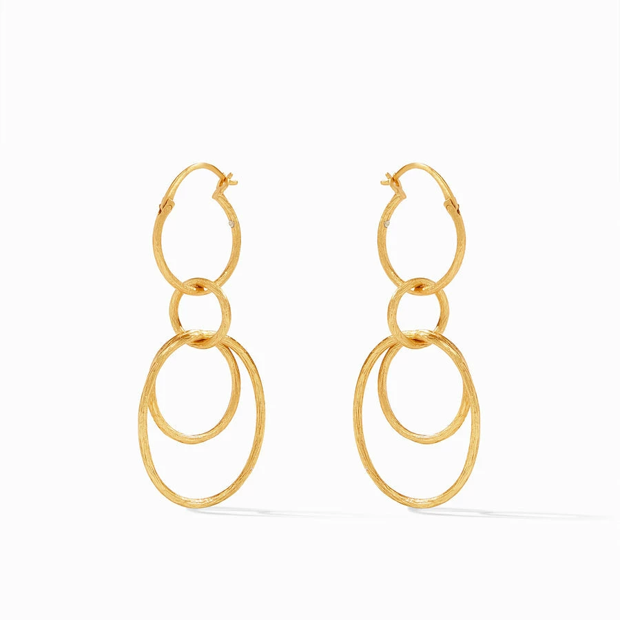 Elegantly scored shimmering 3-in-1 earring that can be worn as a single, double, or triple hoop.