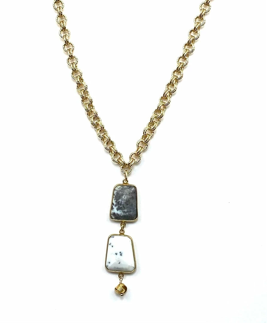 Dendrite Opals set in 14k gold plate drop on 14k gold plate cable chain.