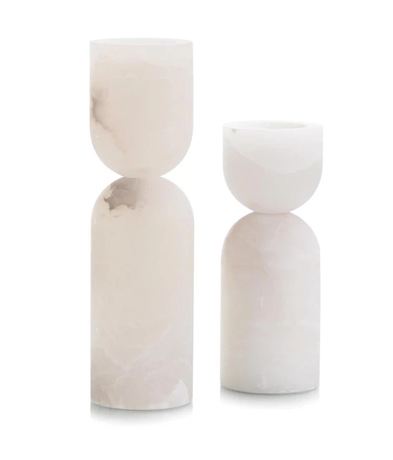 This set of two organic, minimalist, alabaster candleholders will each hold a 3″ diameter candle. Candles not included. Disclaimer: Due to the natural element of alabaster, variations in color and pattern may occur.