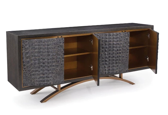 Gate House Furniture Luggage Rack- Dark Grey Frame With Grey Hide Brindle Straps Gifts By Occasion