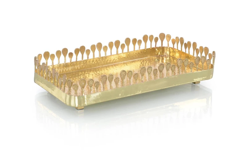 This decorative tray in polished brass features teardrop detailing in hammered brass.