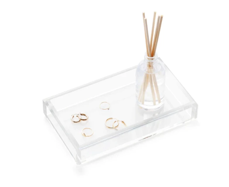 Welcome guests to your home with the Acrylic Guest Towel Tray. Crafted of luxury acrylic, the Guest Towel tray is perfectly sized to hold hand towels, or for use in bath décor as a contemporary catchall for small accessories.