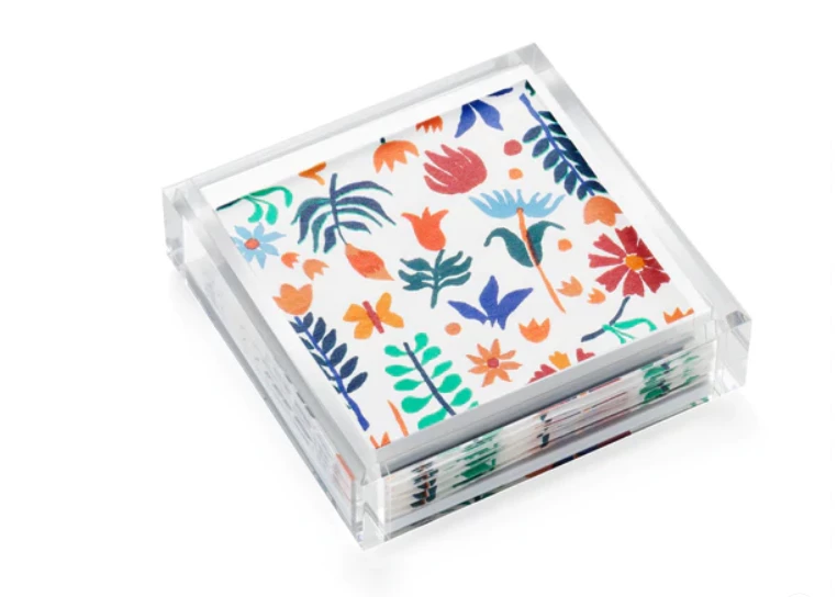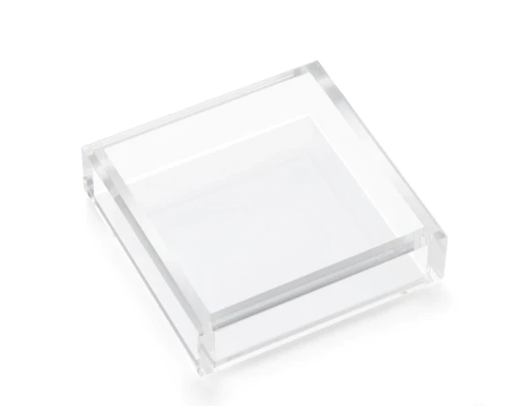 Elevate your hosting with this Cocktail Napkin Tray. Crafted in gleaming crystal clear luxury acrylic, the small square Cocktail Napkin tray brings light and elegance to home entertaining and brightens any tablescape or bar setup.