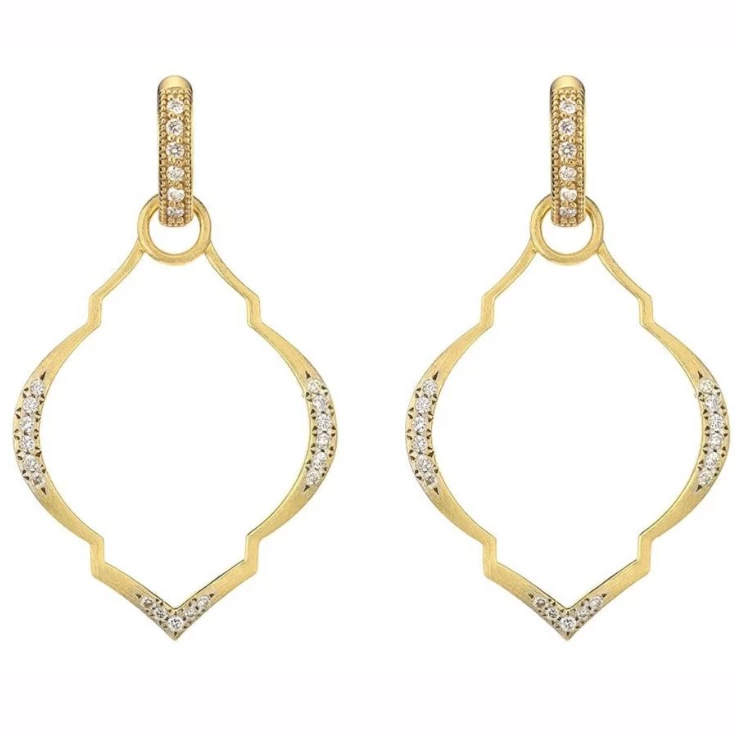 From the Moroccan Collection, the Casablanca Moroccan Earring Charm Frames feature pave round diamonds set in 18K yellow gold with the signature brushed JFJ finish. Wear Earring Charms Frames alone or along with any number of JudeFrances Hoops and Earring Charms. Hoops, charms and frames all sold separately.