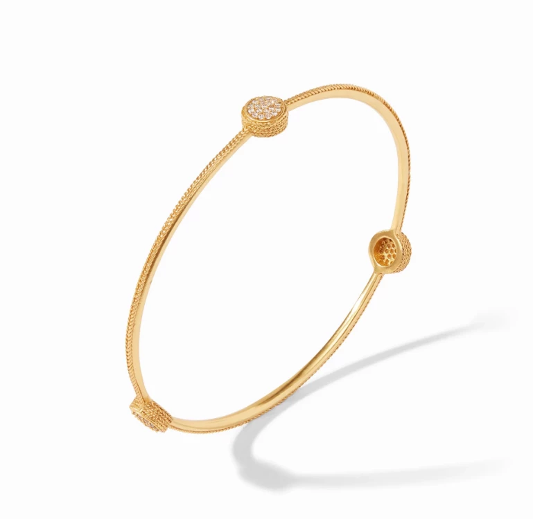 - Model is wearing a stack of 3 bangles in Cubic Zirconia