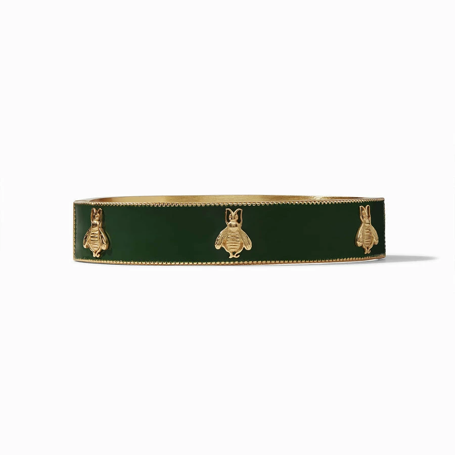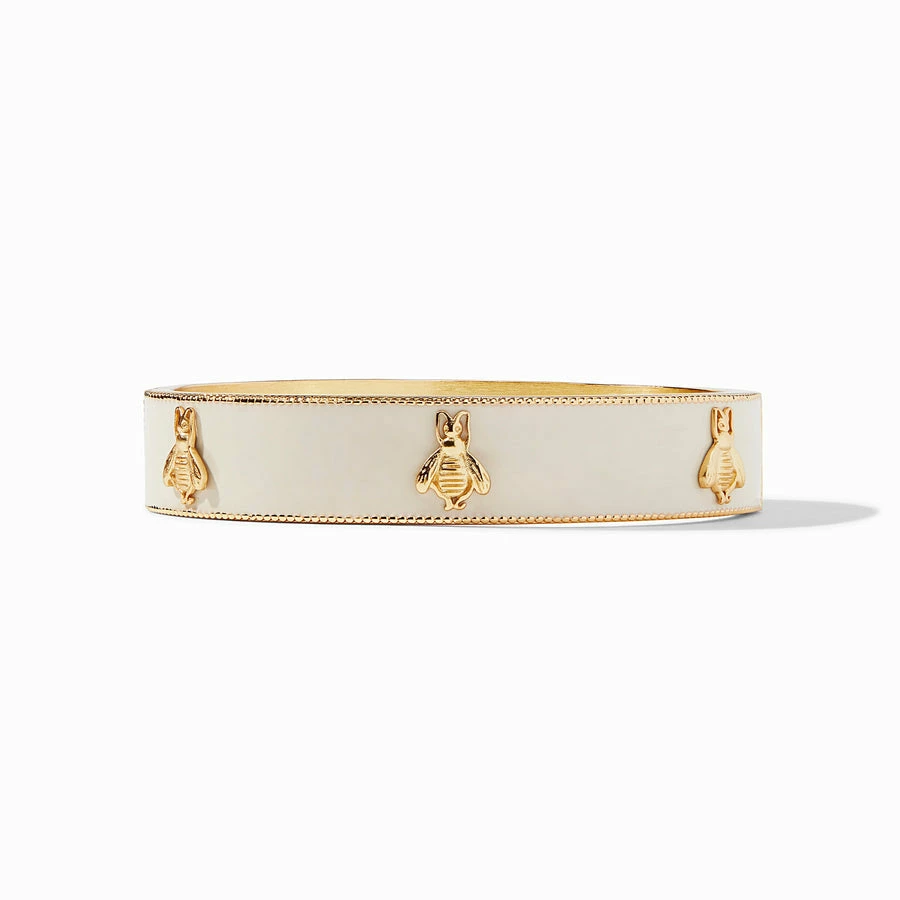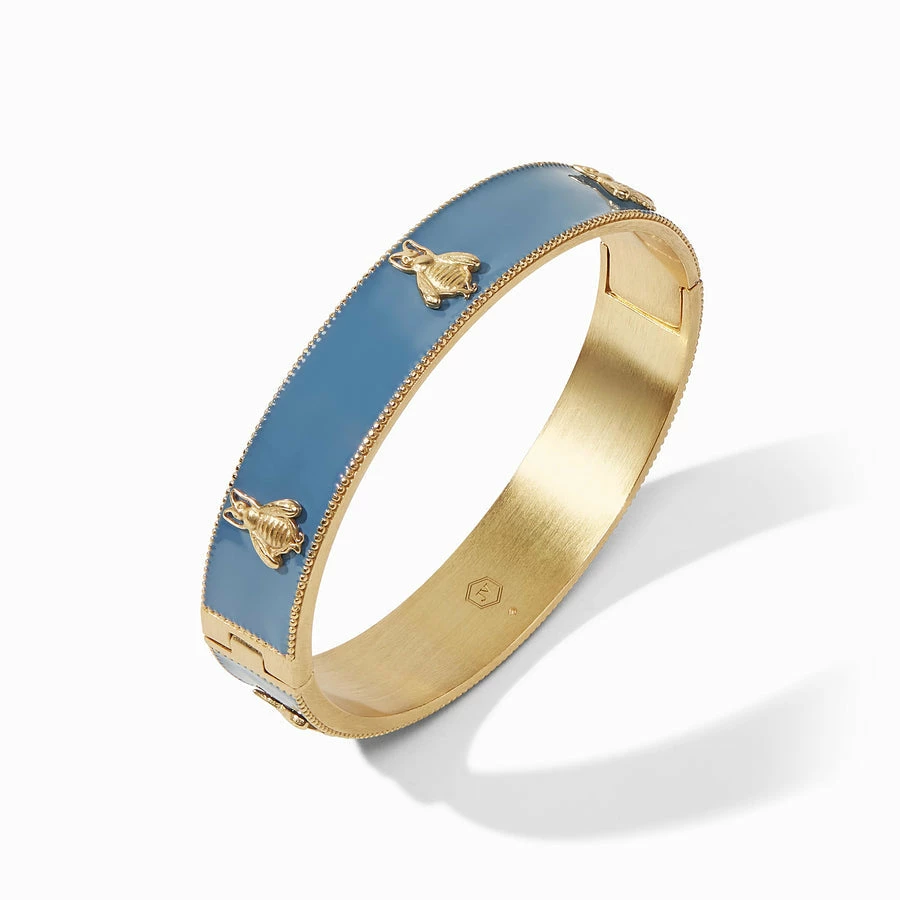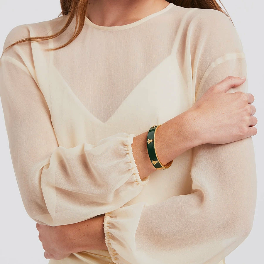 Lustrous enamel bangle decorated with six golden bees.