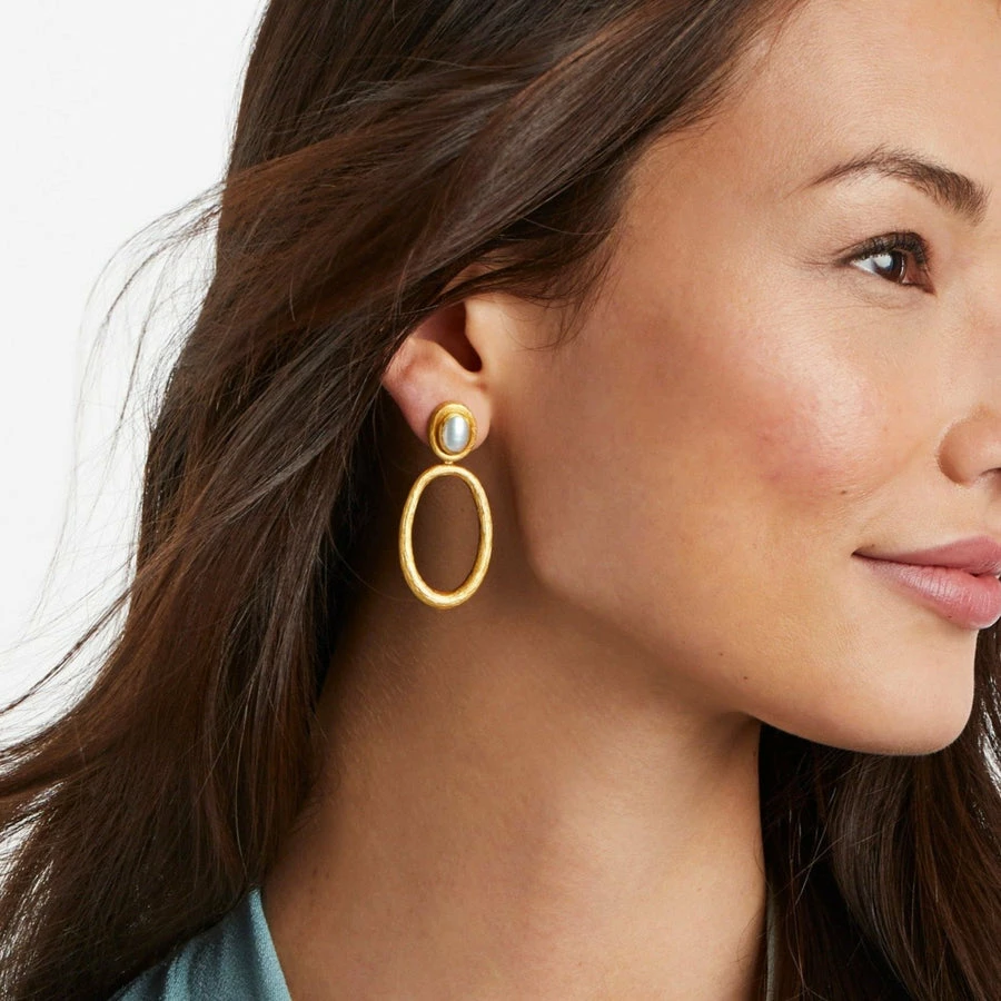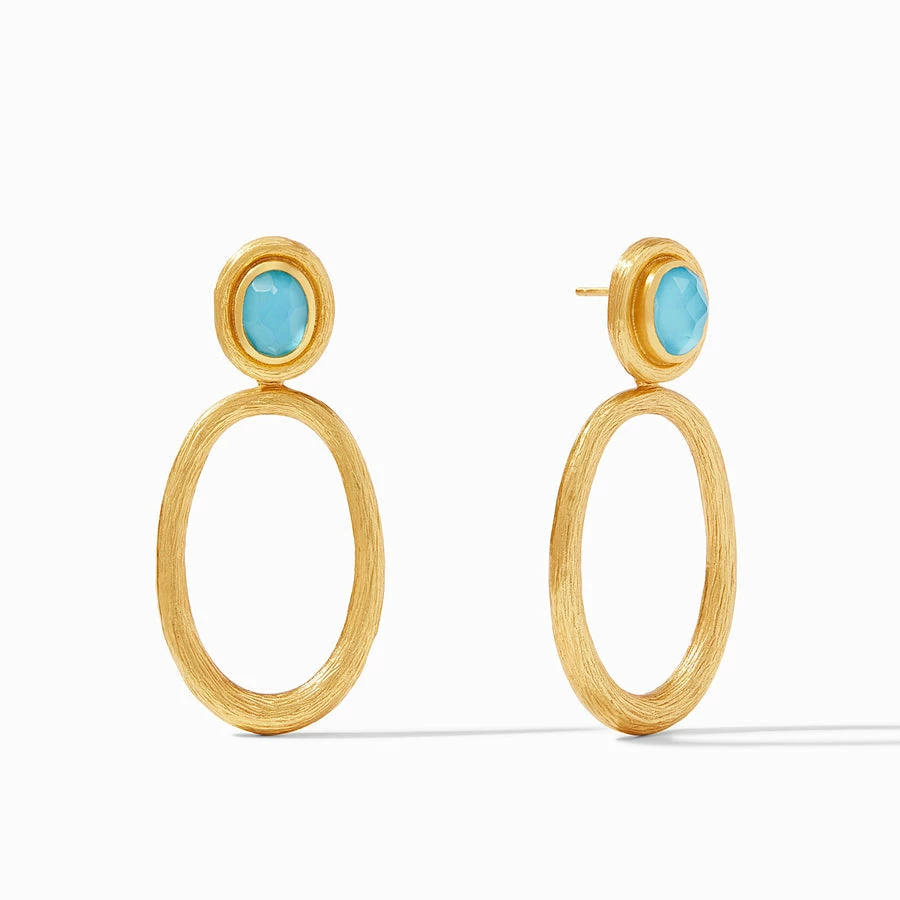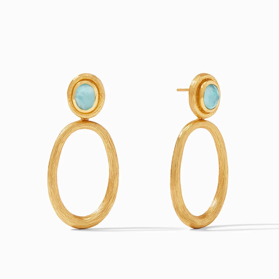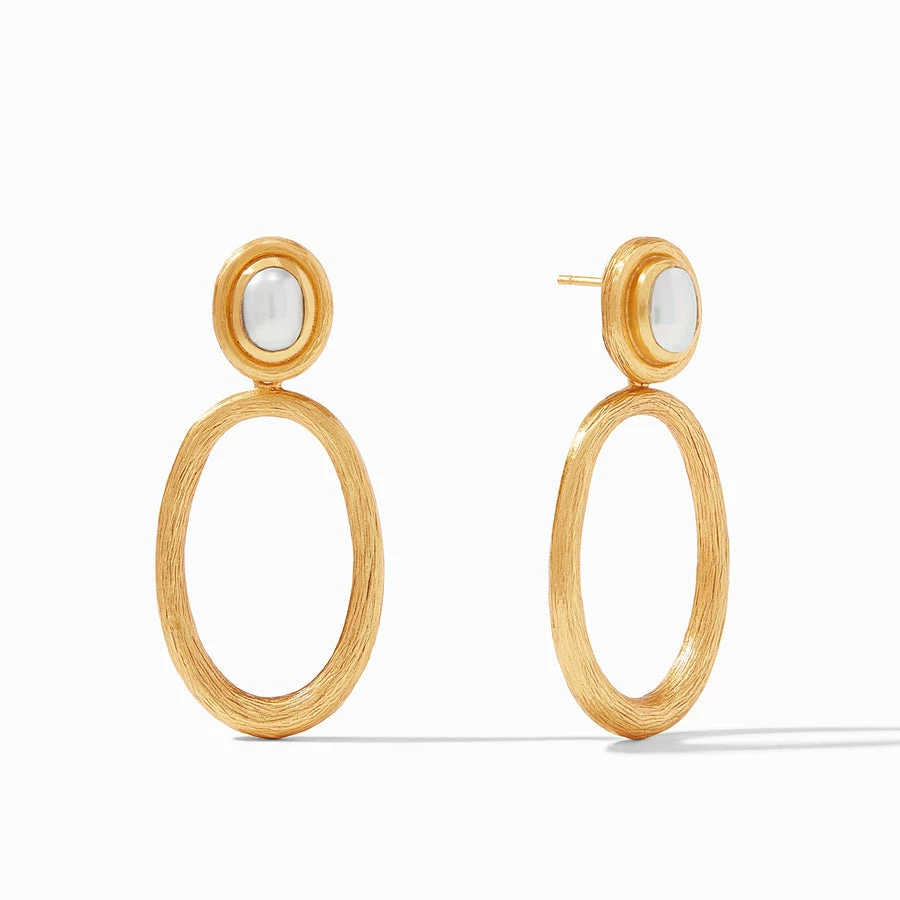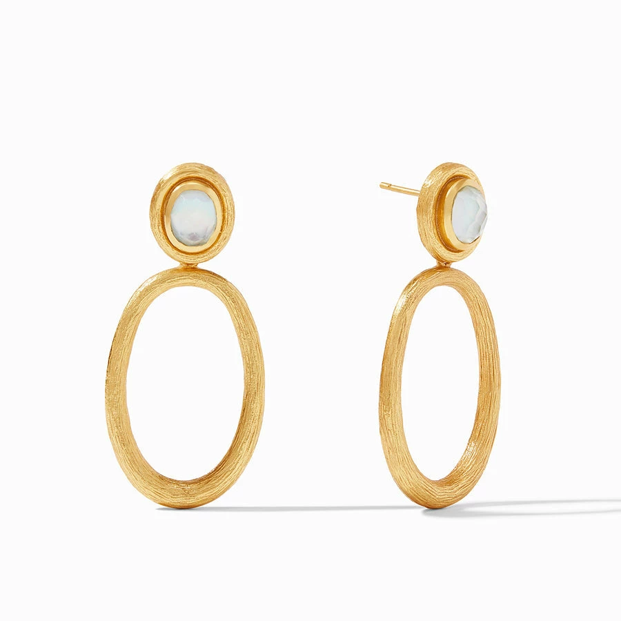 A lightweight statement earring showcasing a sparkling oval top over a delicate hoop.